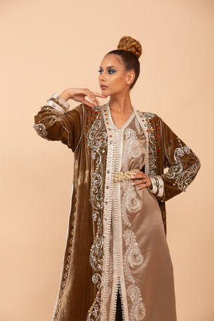 Chaque caftan, fait main avec amour au Maroc, incarne la féminité, la créativité et l'excellence.